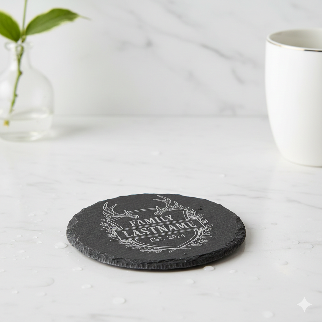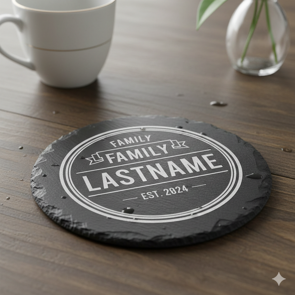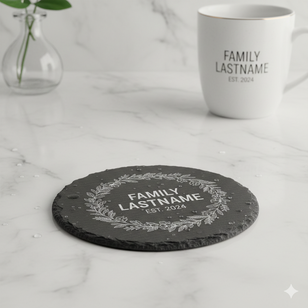 Our coasters are crafted from high-quality materials and precision engraved to ensure clean details and long-lasting results. Perfect for housewarming gifts, weddings, corporate branding, or everyday use.